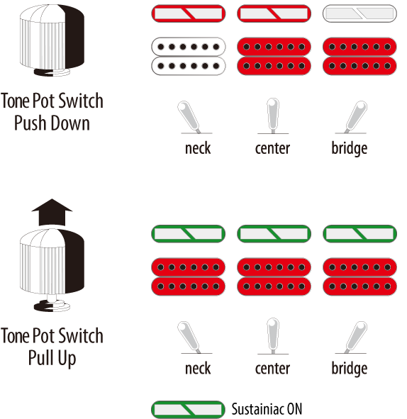 - Tone-potikassa SUSTAINIAC on/off