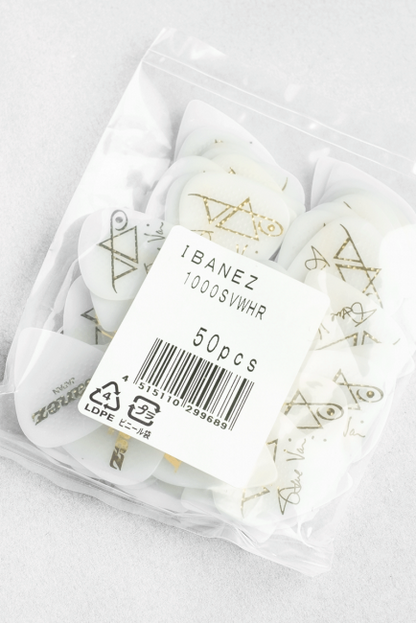 Ibanez Steve Vai -plektra Rubber Grip White, 50kpl