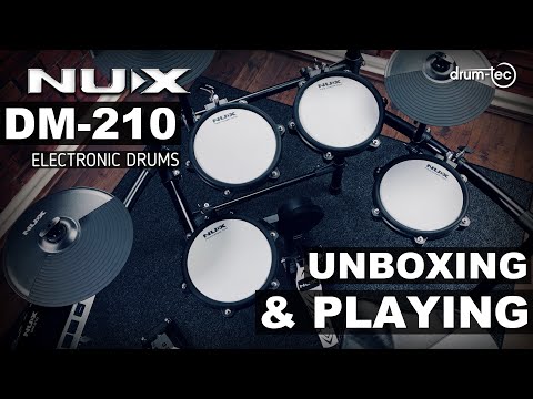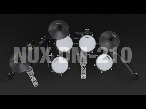 NUX DM-210 on NUX:in uusin sähkörumpusetti joka nostaa edullisen hintaluokan sähkörumpujen tasoa. NUX DM-210:ssa on kunnollinen tukeva teline, soundit jotka ovat hyvin lähellä akustista settiä (15 erilaista rumpusettiä) ja verkkokalvot joilla soittaminen on miellyttävää. Hyvät ominaisuudet kuten tallennus, opetustoiminto ja efektit joilla muokkaat rumpujen soundia viimeistelevät tämän sähkörumpusetin. Bluetoothilla saat soitettua musiikkia rumpujen kautta ja jammailla mukana. Myös bassorummun pedaali kuuluu mukaan tähän settiin. Äänet saat kuuluviin kuulokkeilla tai sähkörumpuvahvistimilla joita löydät verkkokaupastamme myös. Lisää ostoskoriin!